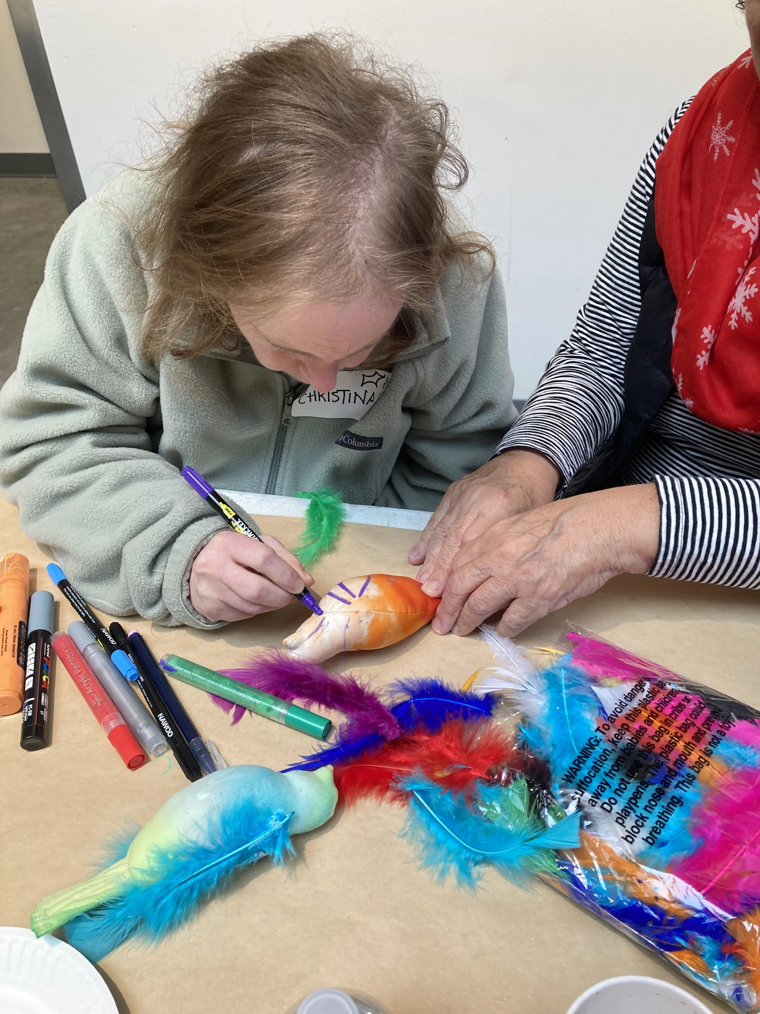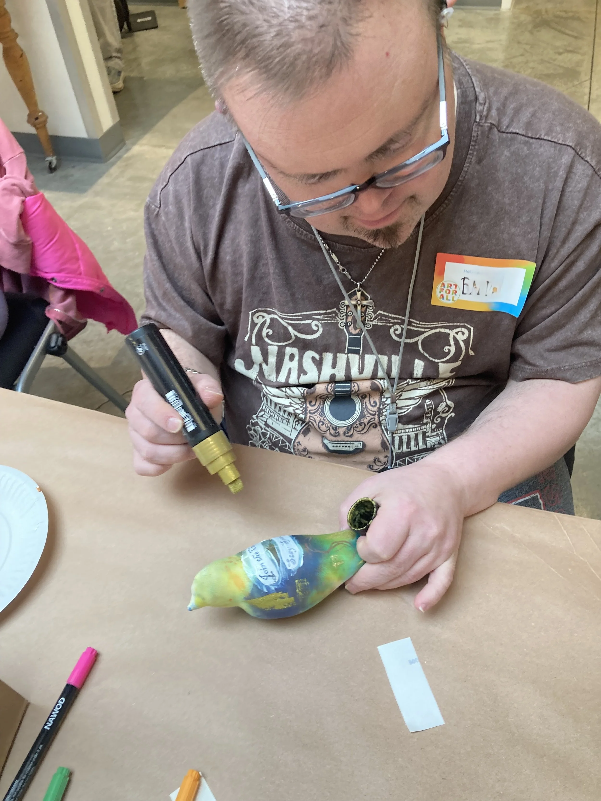 Through these projects, participants build confidence, develop creative skills, and form meaningful connections with others in the community. Their work is often shared at local events, exhibits, and art walks—helping increase visibility and celebrate artists of all abilities.